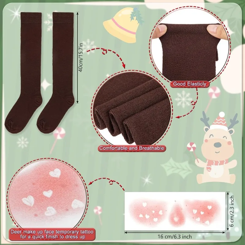 Festive 3-Piece Reindeer Costume Set for Adults - Tutu Skirt, Headband, and Socks for Halloween & Christmas Fun!