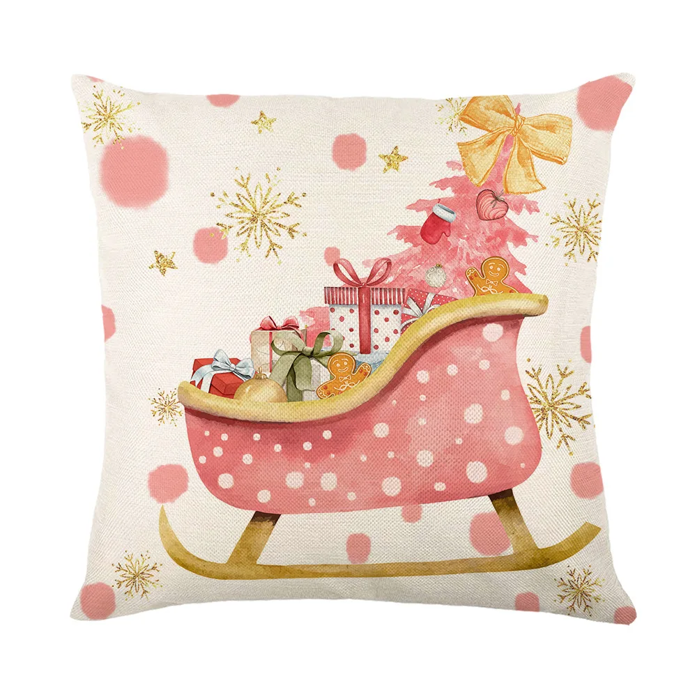 Charming 45Cm Pink Christmas Pillowcase with Santa Claus, Xmas Tree, and Elk - Perfect Holiday Decor for Sofa and Car!