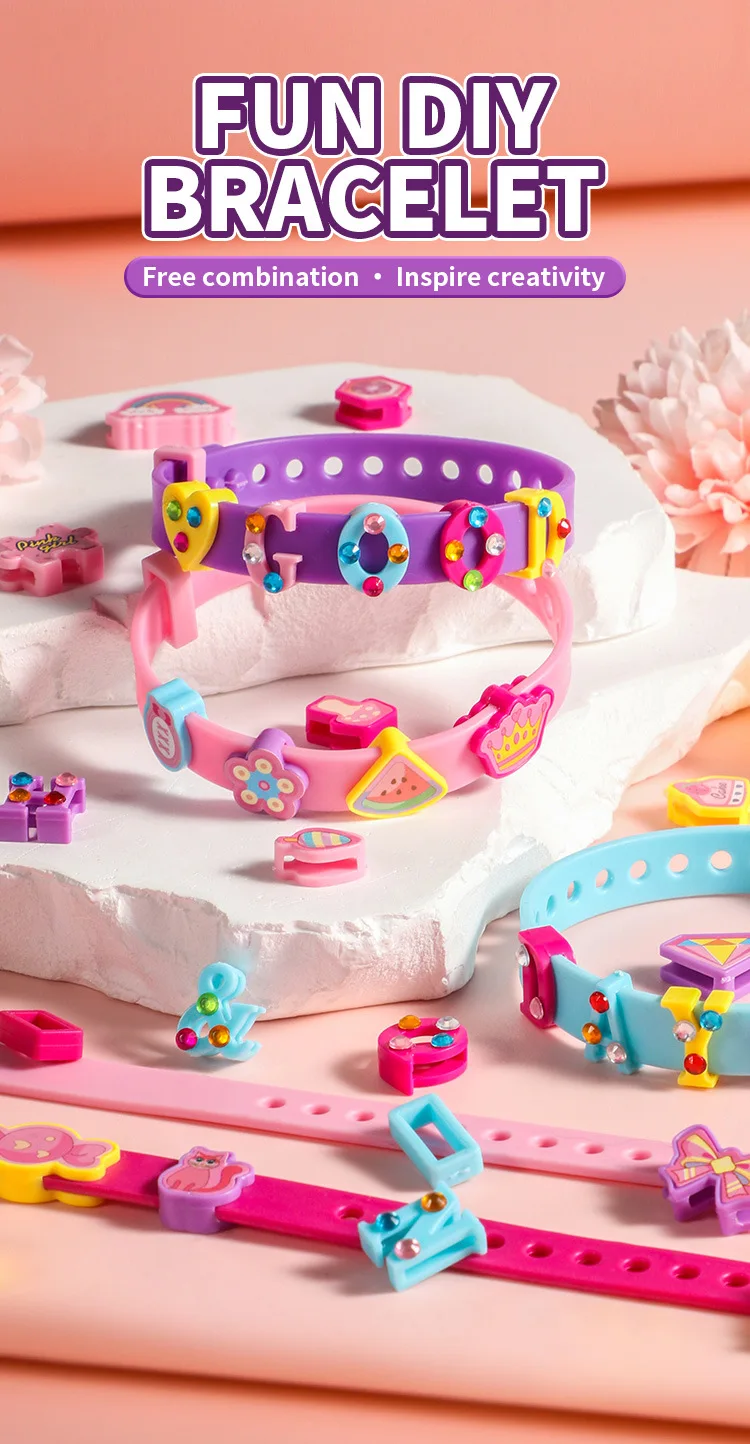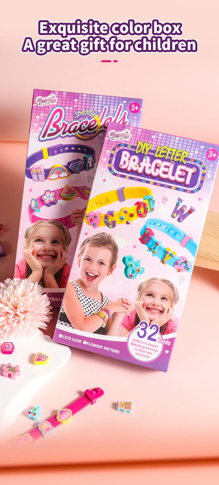 Fun DIY Bracelet Craft Toys Creative Cartoon Shape Letter Making Jewelry Kit for Kids Girls Toy Birthday Christmas Party Gifts
