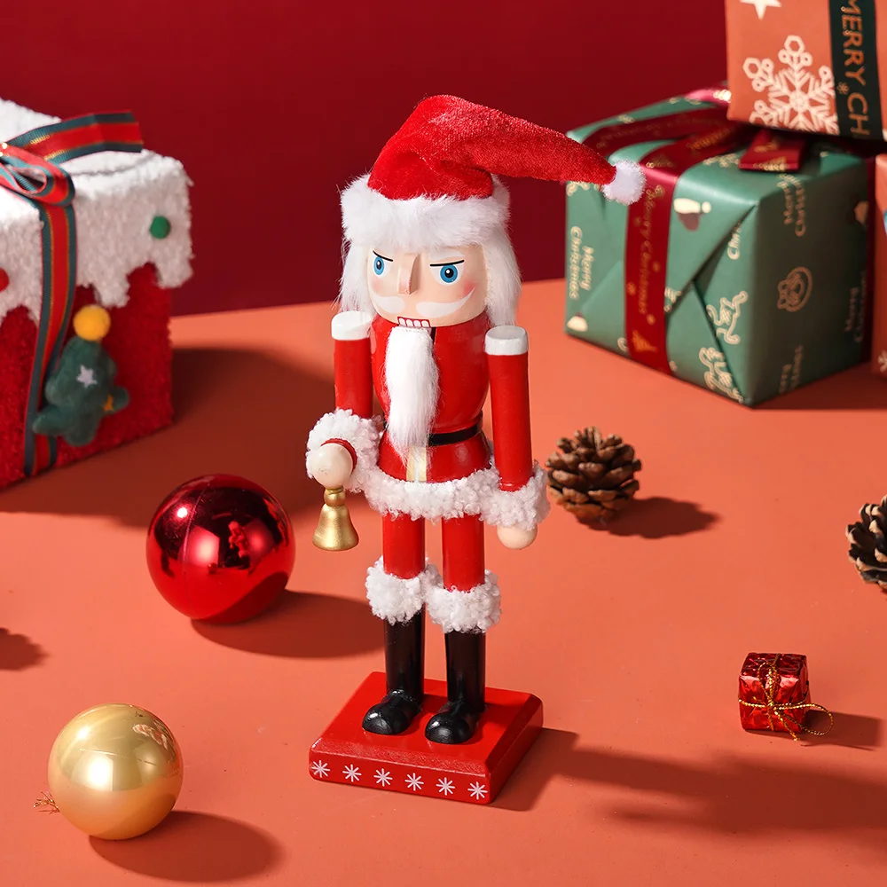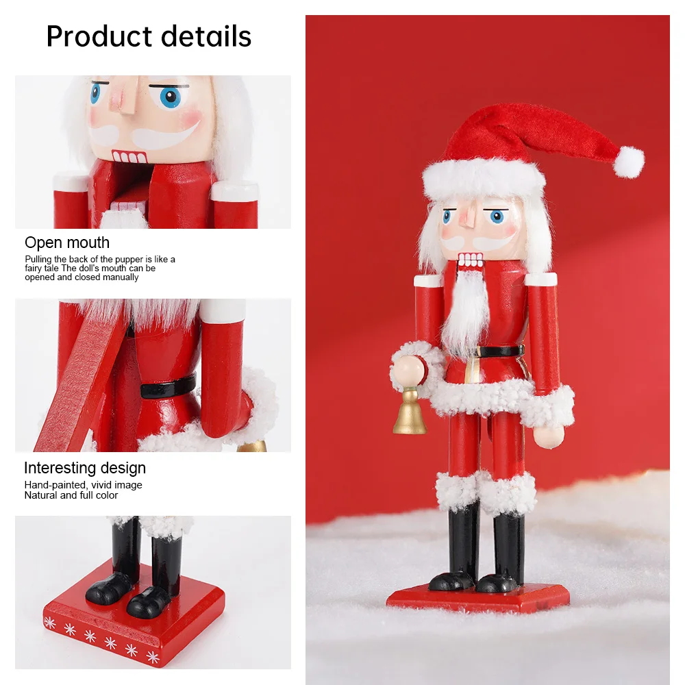 Festive 25CM Santa Claus Nutcracker Puppet - Charming Wooden Statue for Christmas & New Year Decor