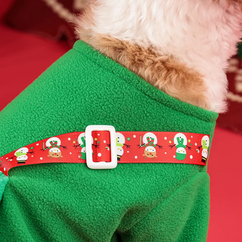 Festive Reindeer Dog Hoodie with Pocket - Cozy Fleece Sweatshirt for Small/Medium Dogs - Green Winter Outfit, Sizes S-XL